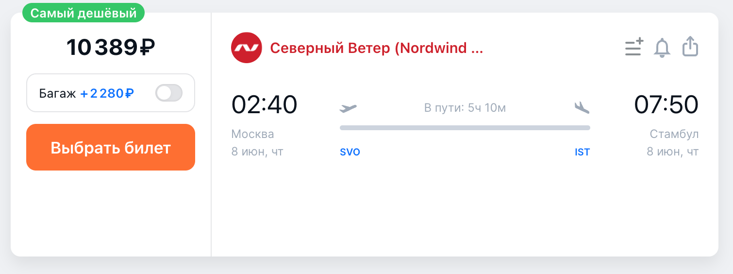 Также цена билетов не меняется от количества поисков или кликов по направлению. То есть если много раз подряд в короткий промежуток времени поискать авиабилет Москва-Стамбул на одни и те же даты, то цена вряд ли изменится. Но билеты по самым дешёвым тарифам покупают быстрее всего.